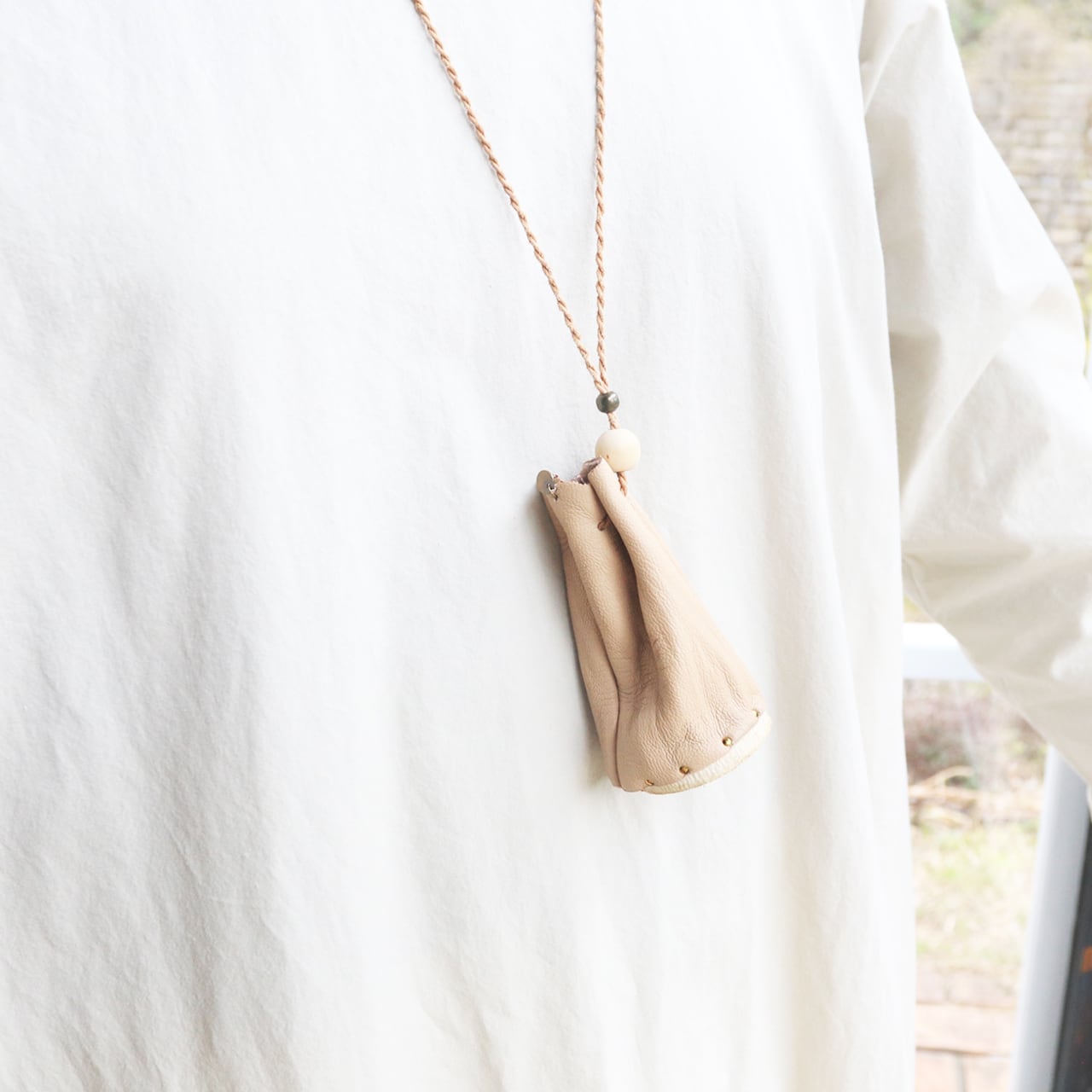 wood bag necklace